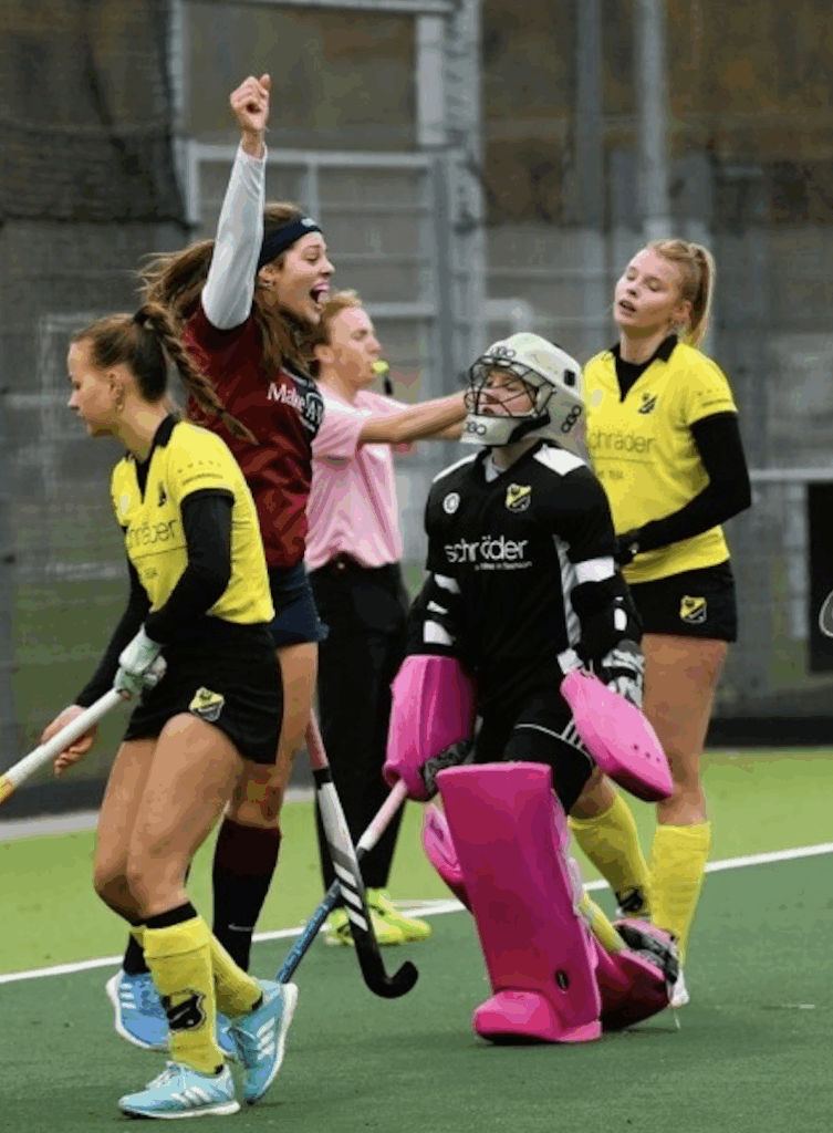 Tegelijkertijd brengt hockey mij veel plezier. De mooiste momenten zitten soms in de kleine dingen: een goal die precies valt zoals je hoopte, een onverwachte actie die perfect uitpakt, of simpelweg het lachen op het veld met vriendinnen tijdens en na de training. Die energie en verbondenheid maken de sport licht en leuk, zelfs wanneer het zwaar is.